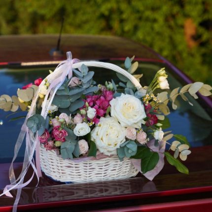Солнце в руках, букет с ранункулюсами, ромашками и пионовидными розами