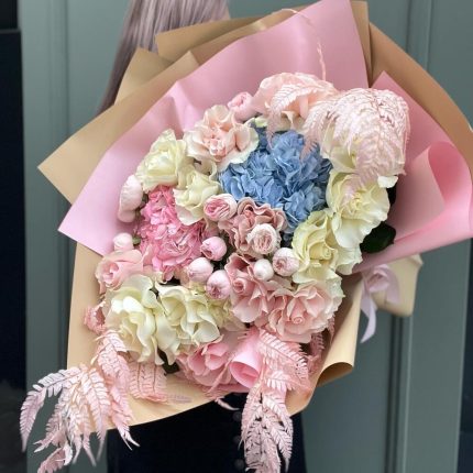 Интерьерная средняя композиция из натуральных сухоцветов и декоративных цветов