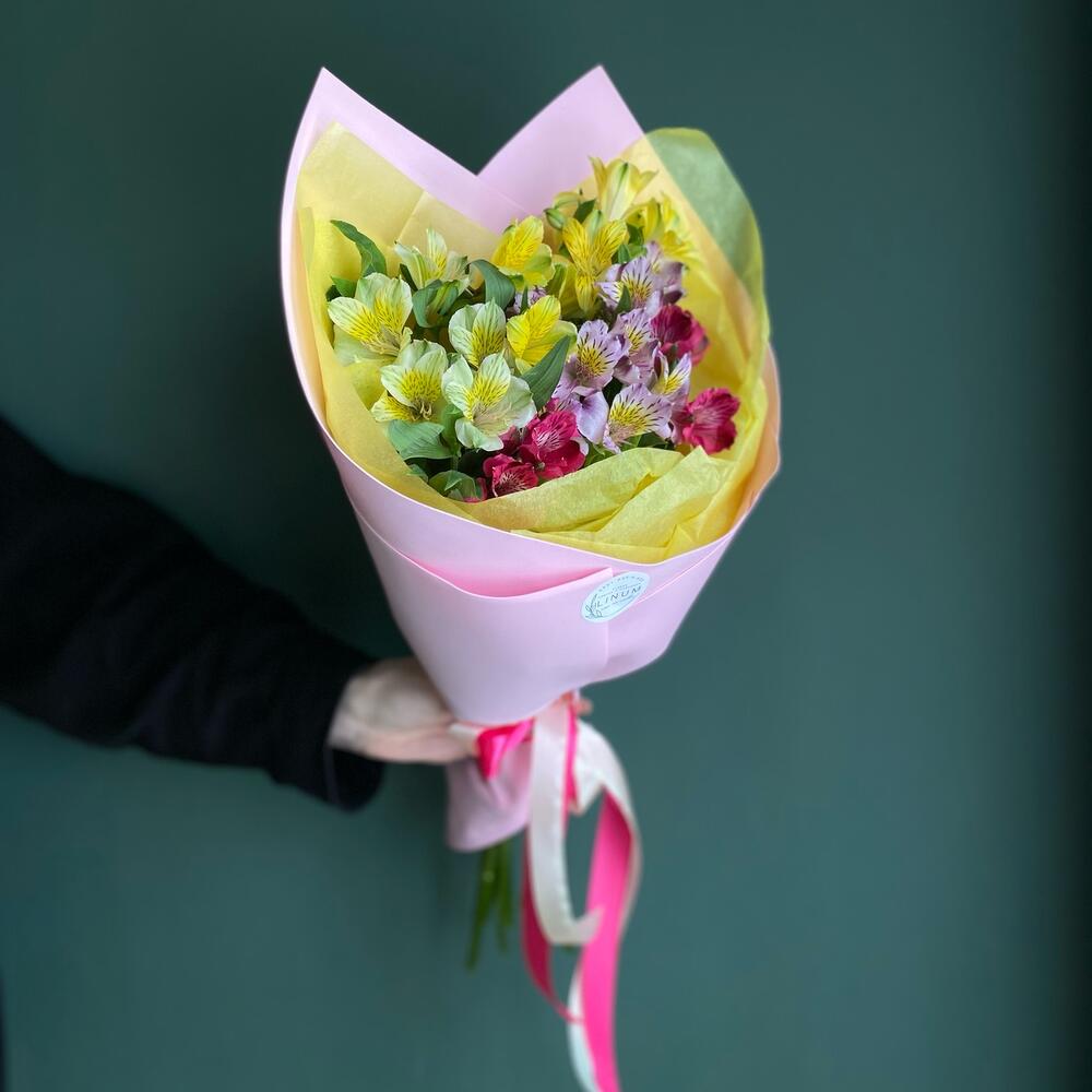 Альстромерия – 7 шт.Упаковка дизайнерская – 1 шт.Открыточка с вашими пожеланиями – 1 шт.уходовое средство для цветов – 1 шт.транспортировочная упаковка – 1 шт.