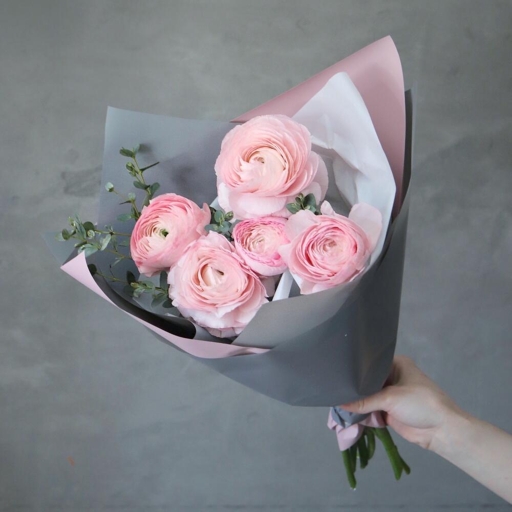 Упаковка – 1 шт.Ранункулюс – 5 шт.Эвкалипт – 2 шт.