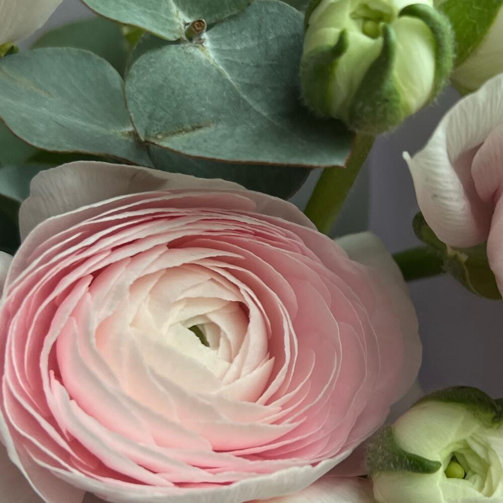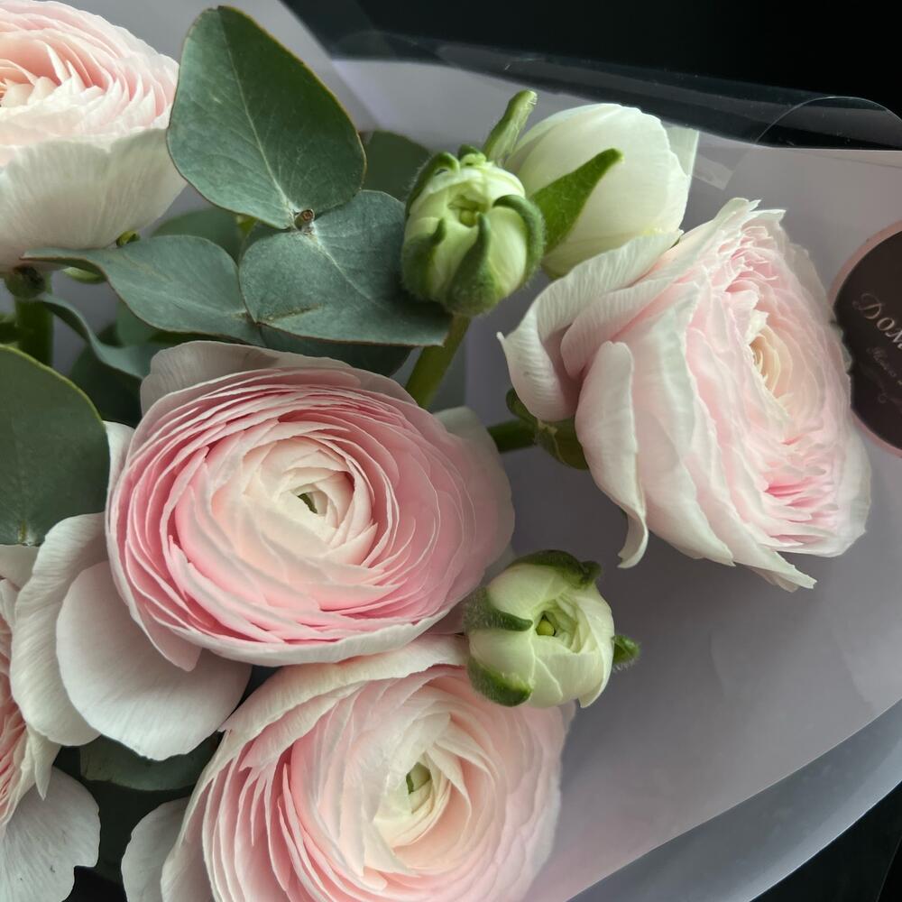 Букет с ранункулюсами и эвкалипт