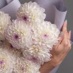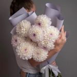 Георгина белая – 9 шт.Упаковка дизайнерская – 1 шт.Лента атласная – 2 шт.Открыточка с вашими пожеланиями – 1 шт.хорошее настроение – 100 шт.инструкция по уходу за цветами – 1 шт.коробка переноска – 1 шт.Кризал – 1 шт.