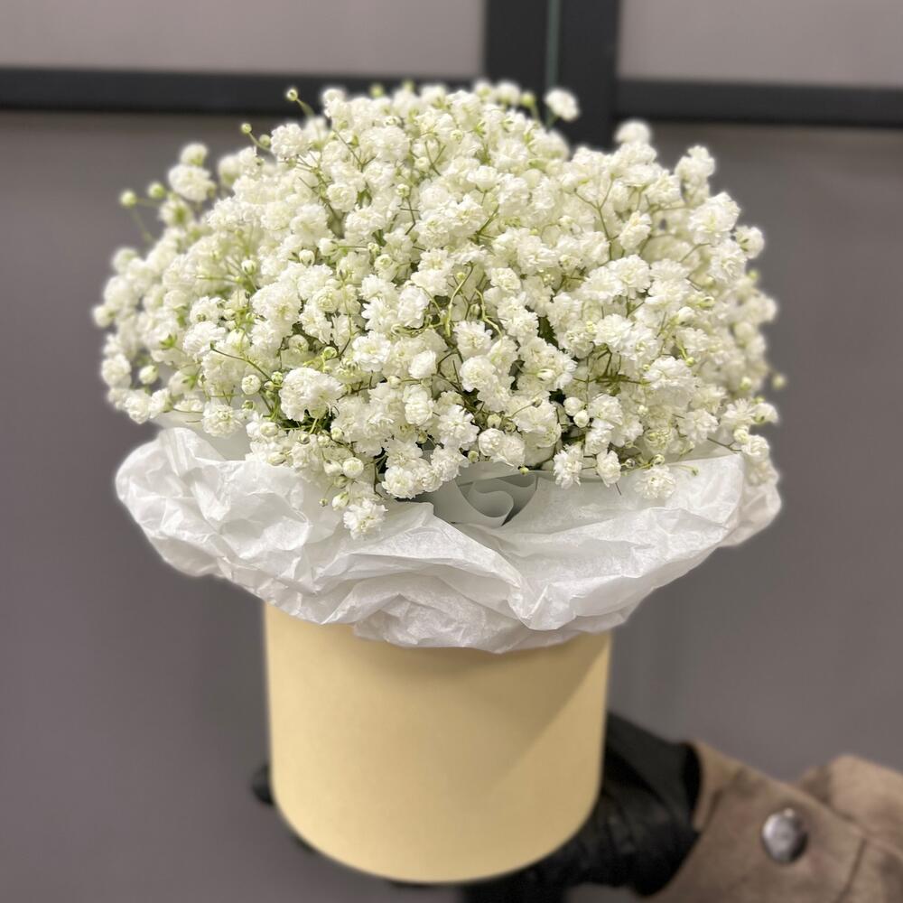 Гипсофила – 5 шт.Коробка шляпная – 1 шт.Тишью – 1 шт.Оазис флористический – 1 шт.