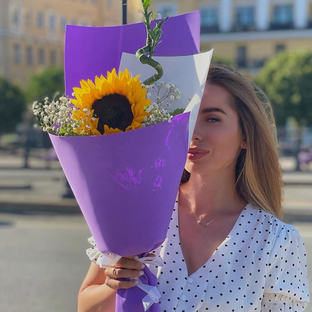 Подсолнух – 1 шт.Бамбук – 1 шт.Гипсофила – 1 шт.Фоамиран (упаковка) – 1 шт.бумага матовая – 1 шт.Лента – 1 шт.