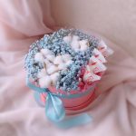 “Атлас☁️” – цветочная композиция с зефиром в деревянном ящике