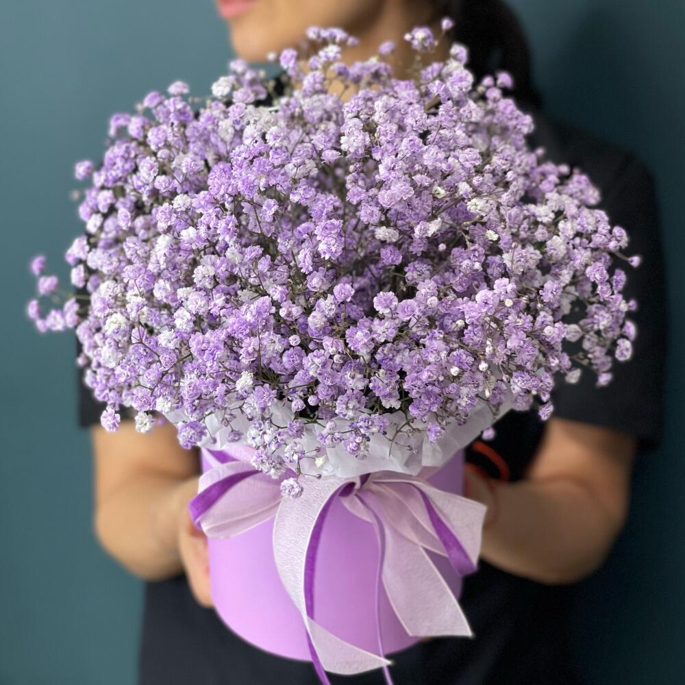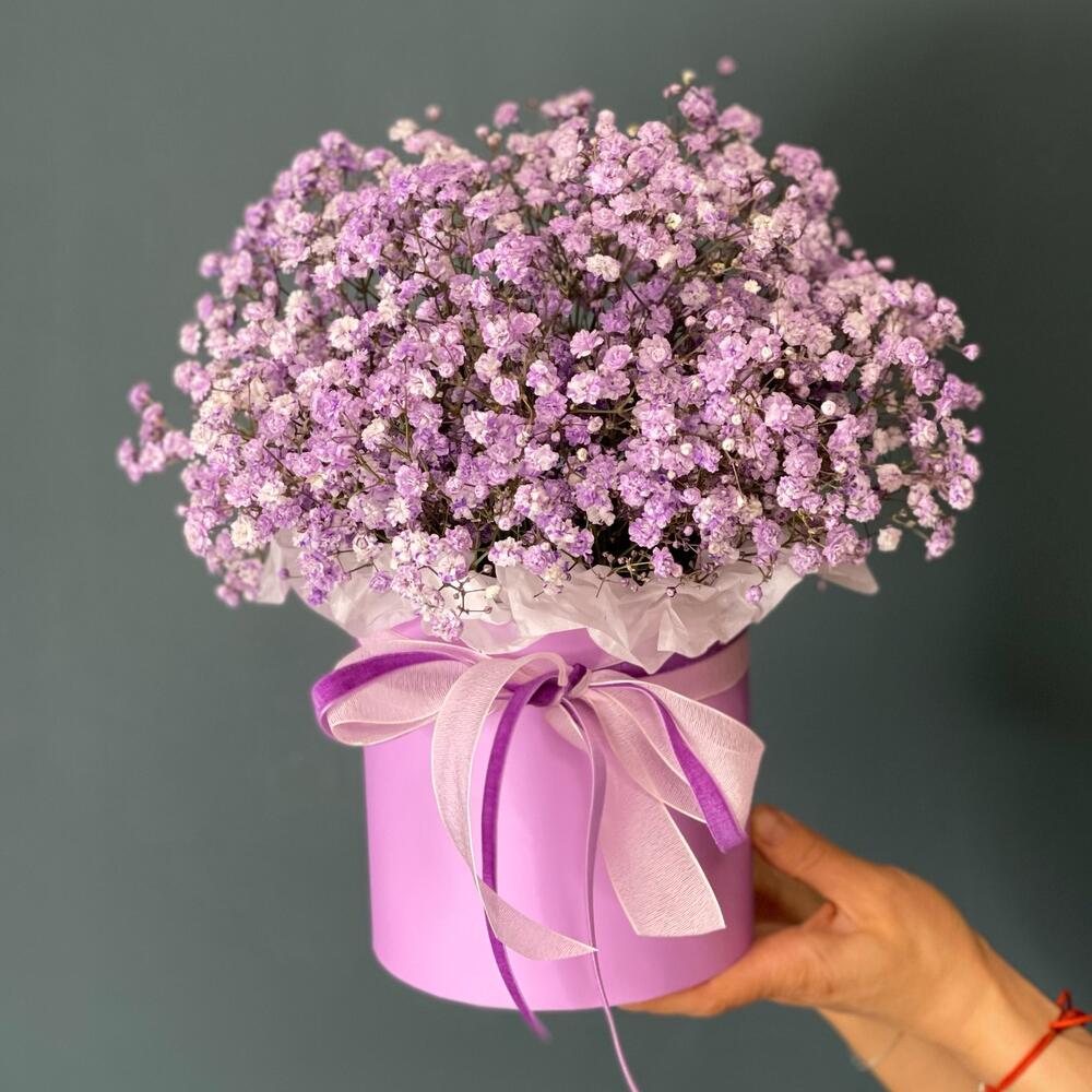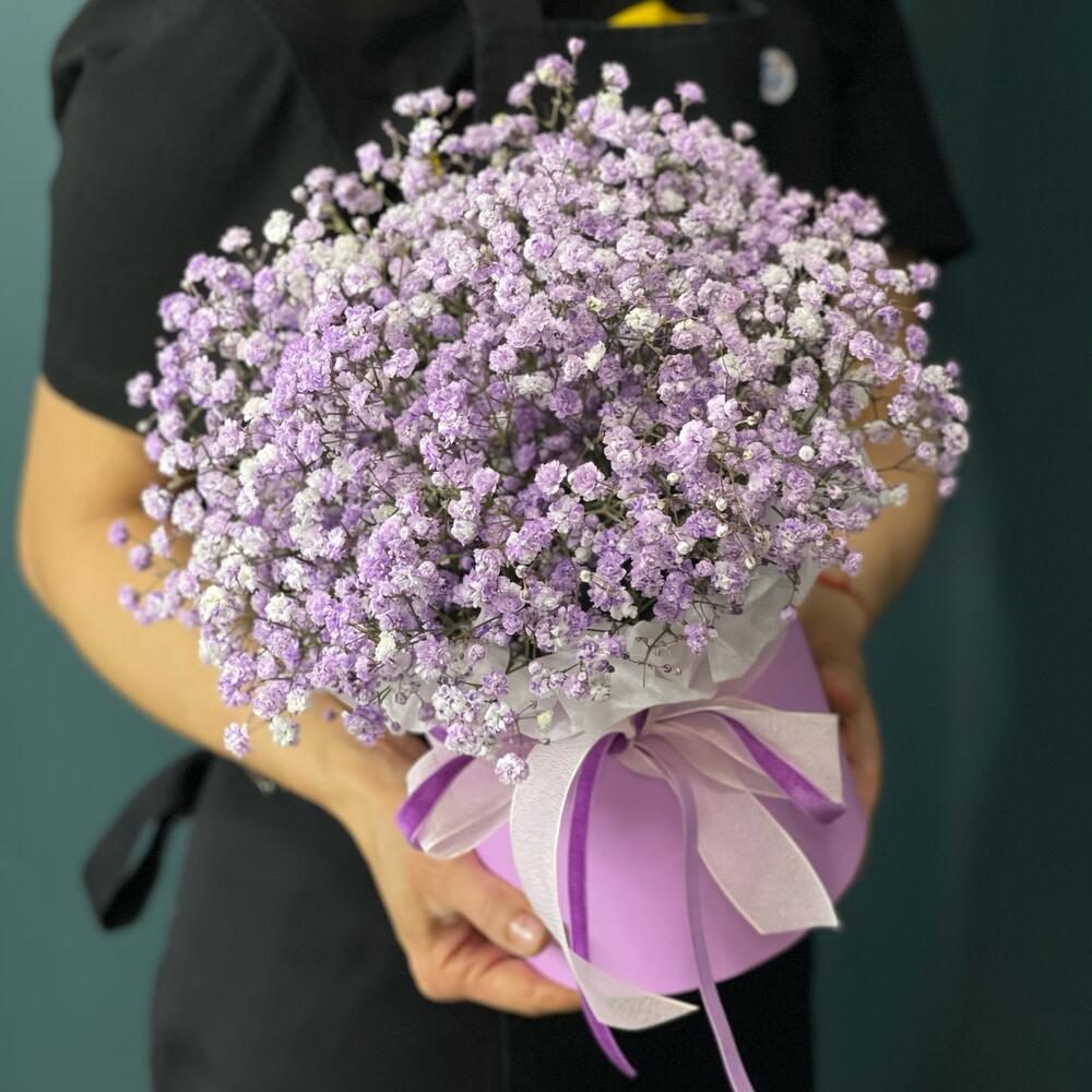 Гипсофила – 6 шт.Лента атласная – 1 шт.Коробка шляпная – 1 шт.