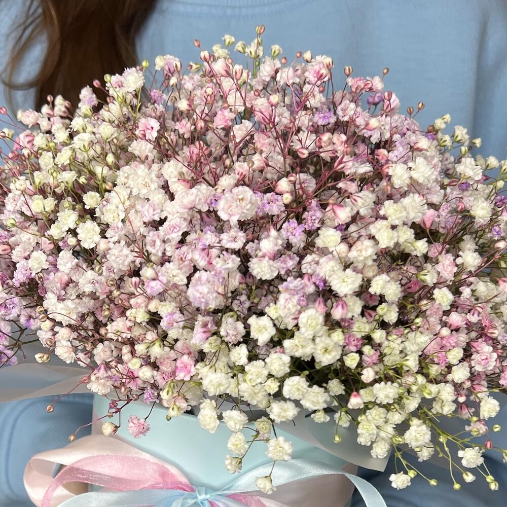 Гипсофила – 7 шт.Коробка шляпная – 1 шт.комплимент от polyanka – 1 шт.