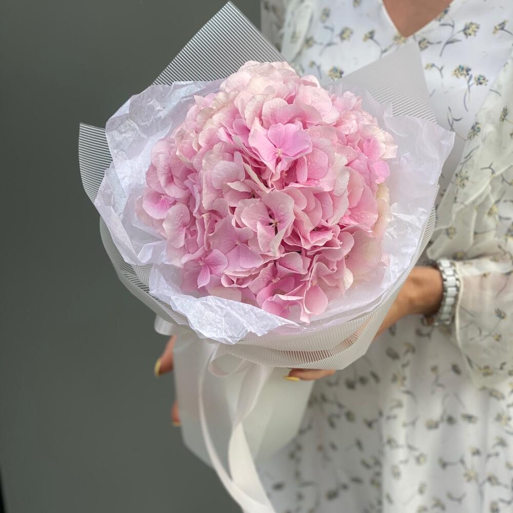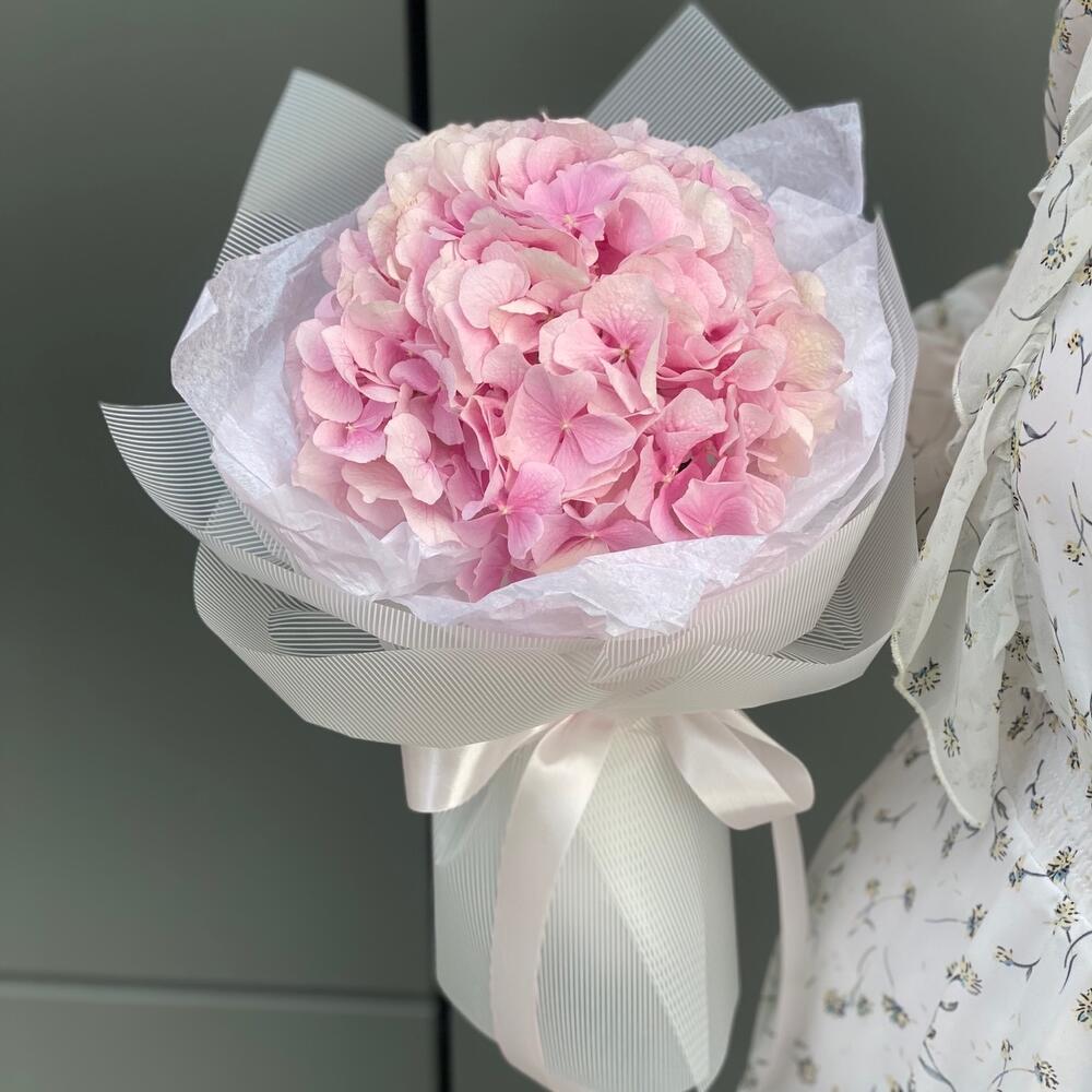 Букет из одной ветки нежно розовой гортензии в оформлении!