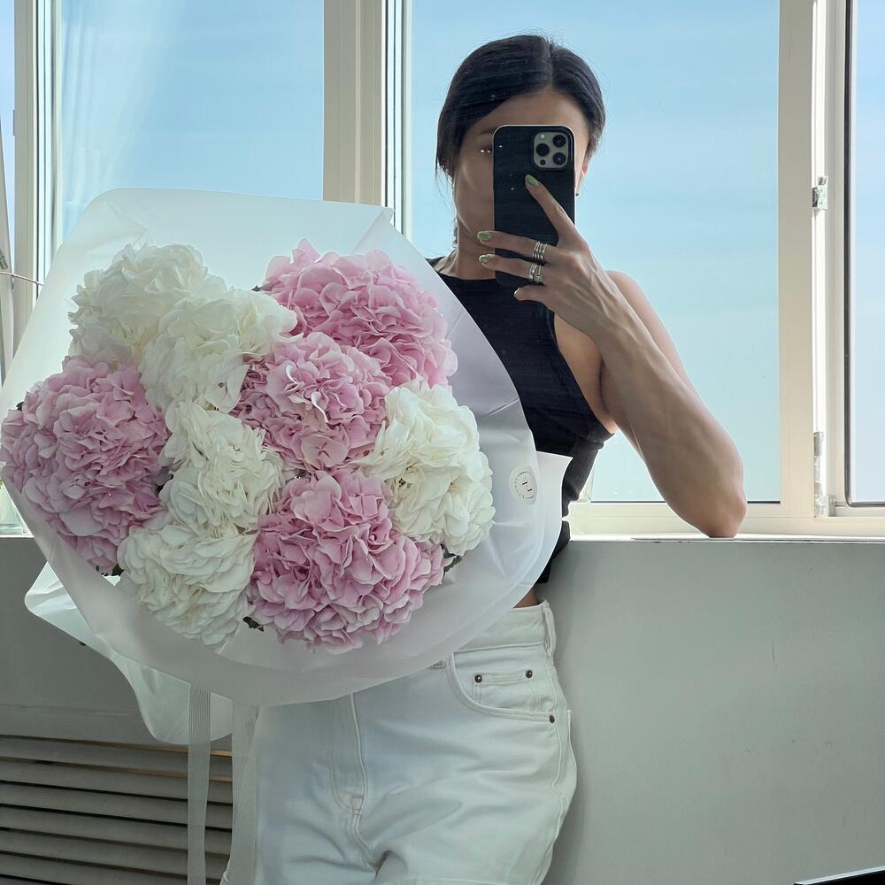 гортензия белая премиум – 5 шт.гортензия розовая премиум – 4 шт.Пленка матовая – 1 шт.