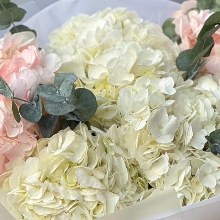 “Эвкалиптическая роскошь” гортензия и пионовидная кустовая роза