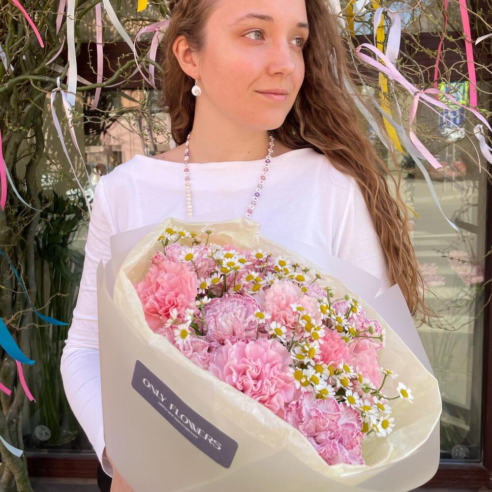 Диантус – 15 шт.Матрикария – 4 шт.Упаковка дизайнерская – 2 шт.