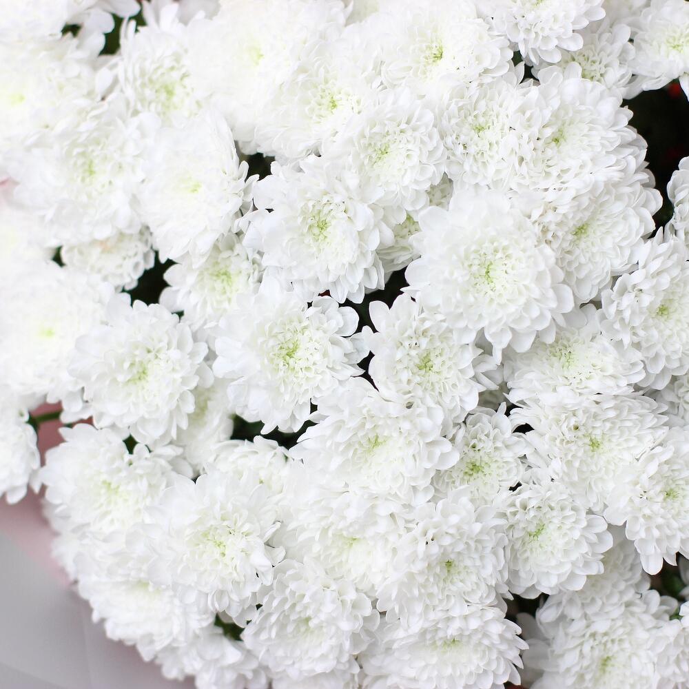 Хризантема Сантини – 21 шт.Лента атласная – 1 шт.Упаковка дизайнерская – 4 шт.
