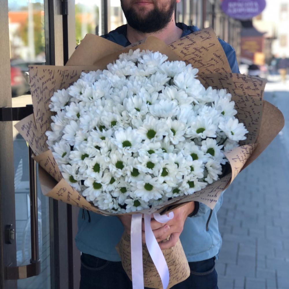 Белоснежная хризантема в стильной упаковке!