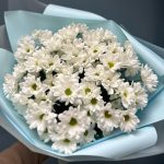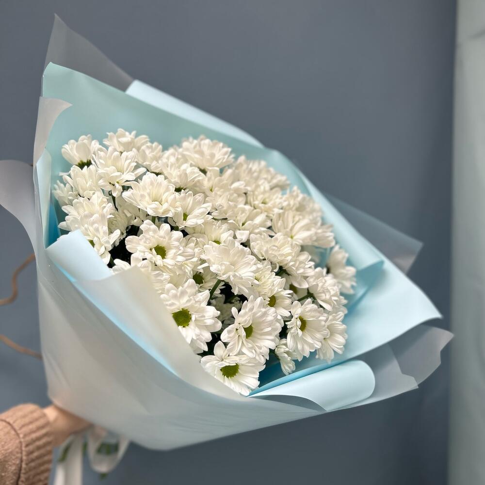 Кустовая хризантема – 9 шт.Упаковка – 2 шт.Лента атласная – 1 шт.