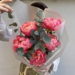 Пион – 5 шт.Эвкалипт – 2 шт.Упаковка дизайнерская – 1 шт.