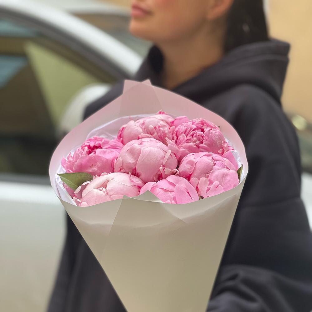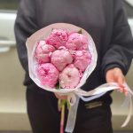 Упаковка – 2 шт.Лента атласная – 1 шт.Пион Сара Бернар розовый – 7 шт.