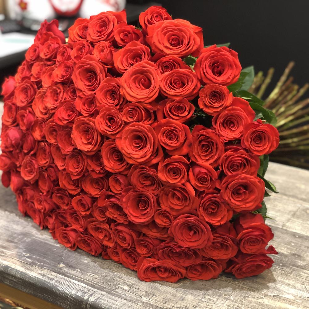 101 красная роза 60 см в букете