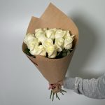 Крафт – 1 шт.Белая роза 50 см – 15 шт.