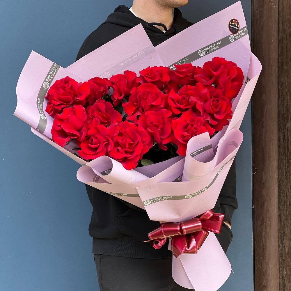 Роскошные ароматные красные розы в стильном оформлении порадуют ваших близких по любому поводу