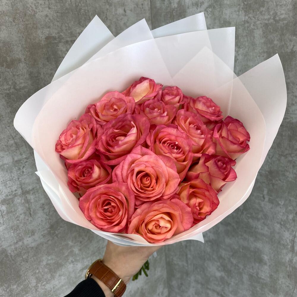 Роза – 15 шт.Упаковка – 3 шт.Атласная лента – 1 шт.