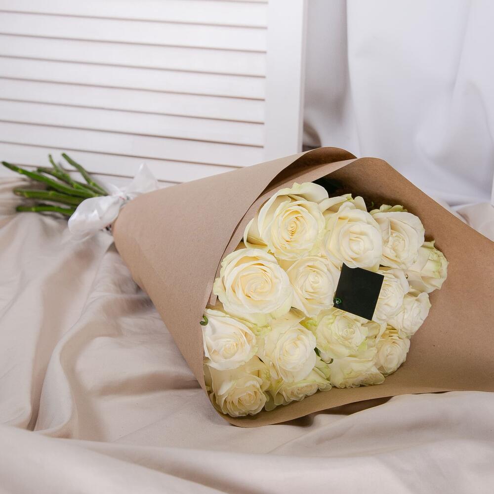 Роза mondial – 15 шт.Крафт-упаковка – 1 шт.Лента атласная – 1 шт.