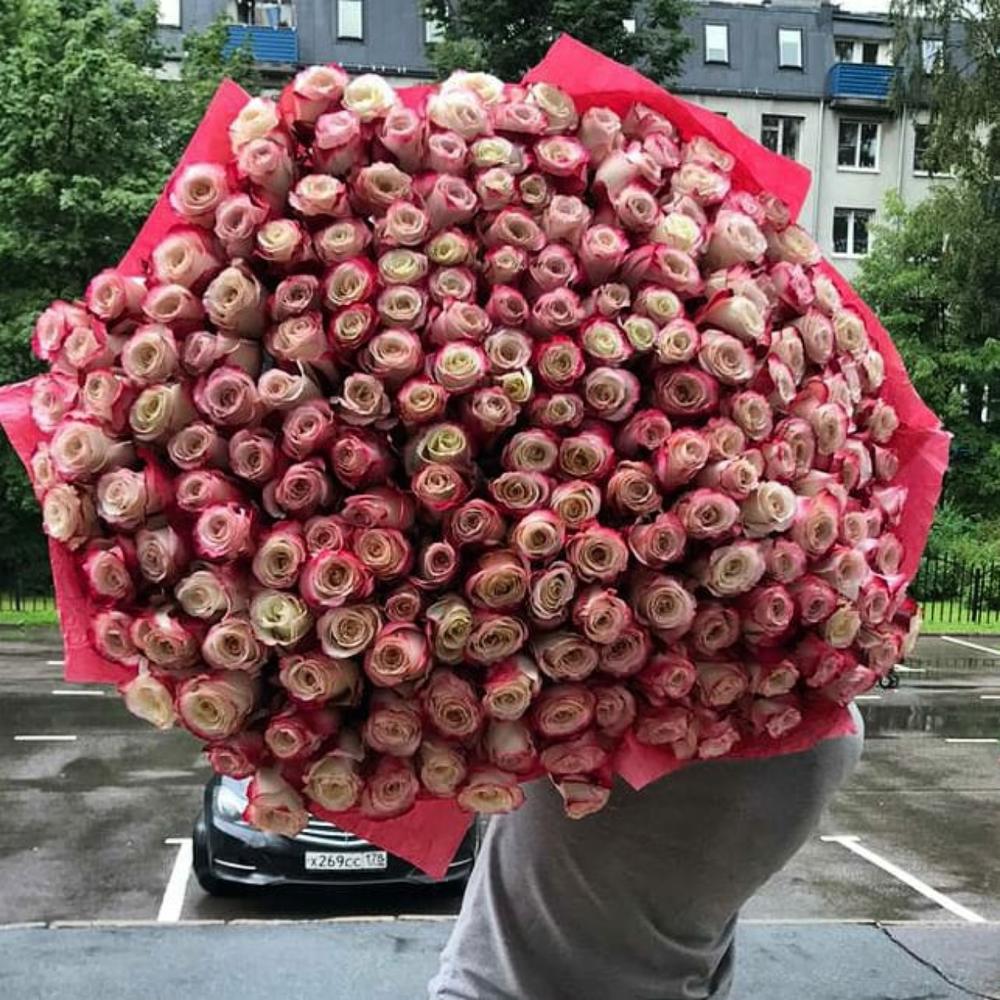 Роза эквадор 80 см – 201 шт.Упаковка дизайнерская – 3 шт.Лента атласная – 1 шт.