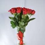 Красная роза эквадор – 25 шт.Пленка прозрачная – 1 шт.Лента атласная – 1 шт.