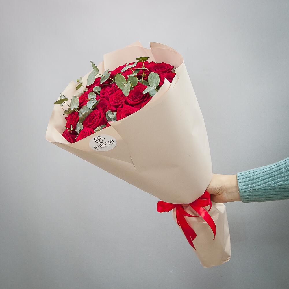 Эвкалипт – 2 шт.Роза – 25 шт.Матовая пленка – 1 шт.