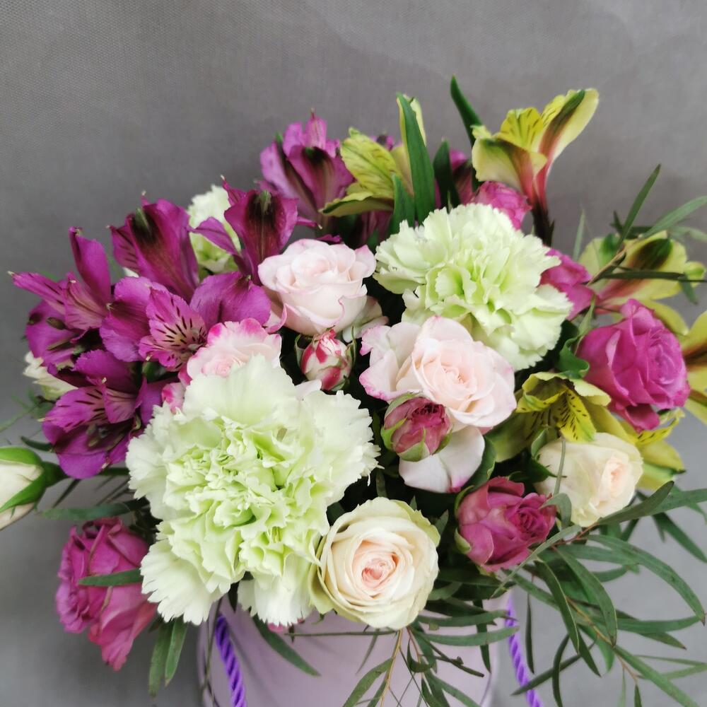 Гвоздики, Кустовые розы, Пионовидные розы, Розы