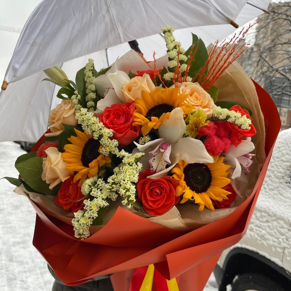 Категорий: Альстромерии, Орхидеи, Подсолнухи, Розы, Сухоцвет