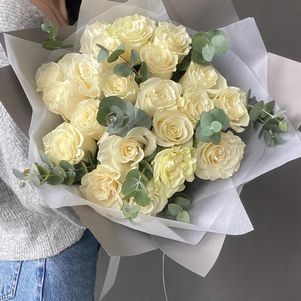 Альстромерии, Кустовые розы, Лизиантусы, Пионовидные розы, Розы, Ромашки