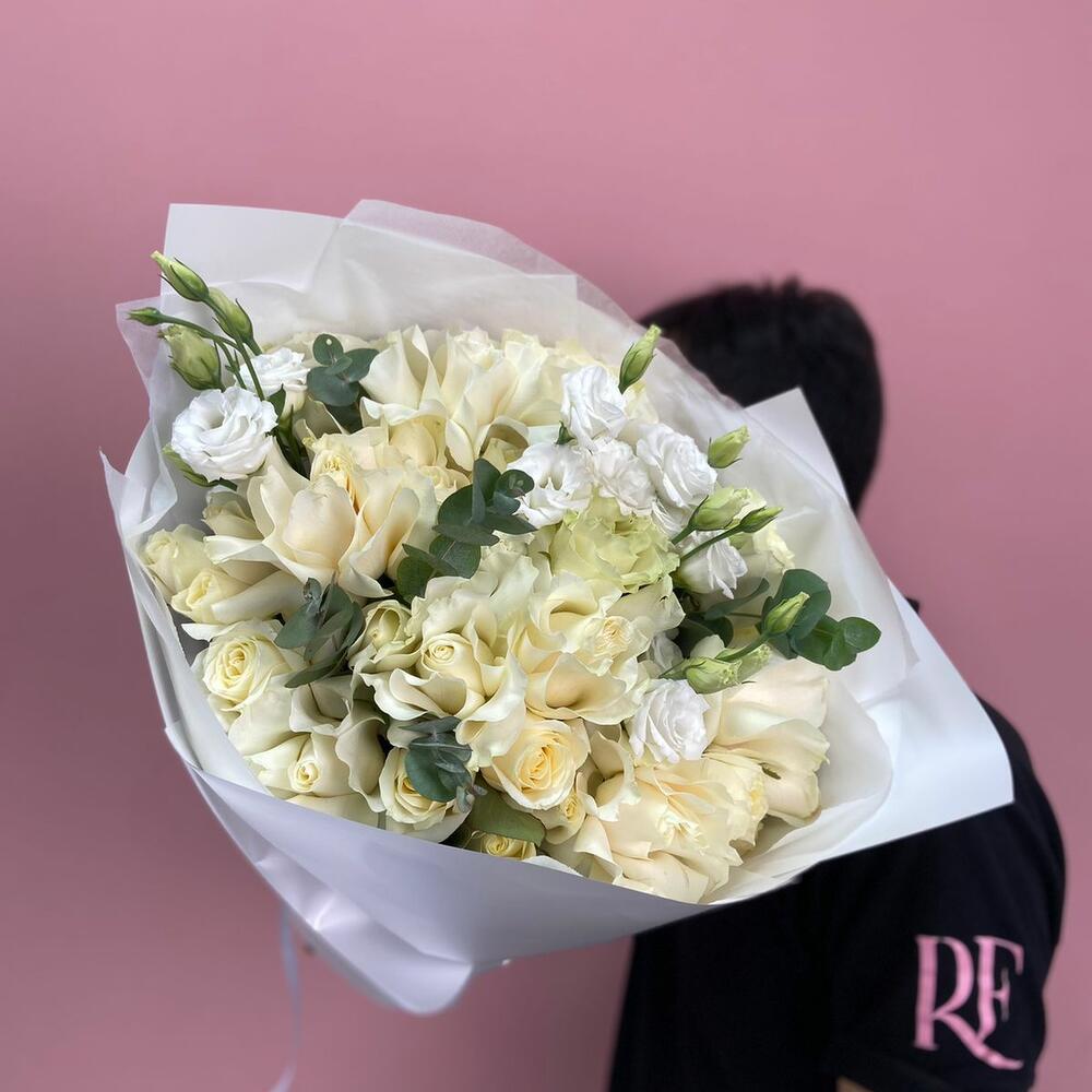 Альстромерии, Кустовые розы, Лизиантусы, Пионовидные розы, Розы, Ромашки