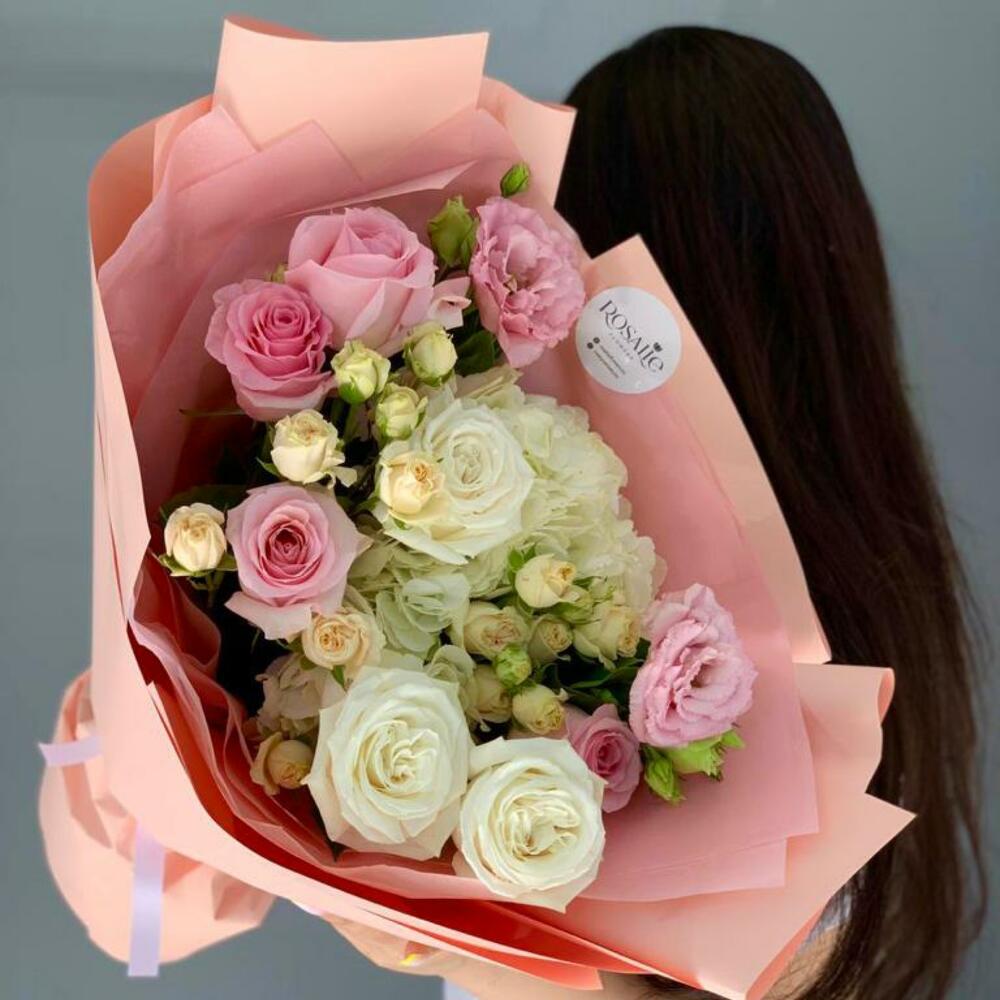 Гвоздики, Кустовые розы, Пионовидные розы, Розы