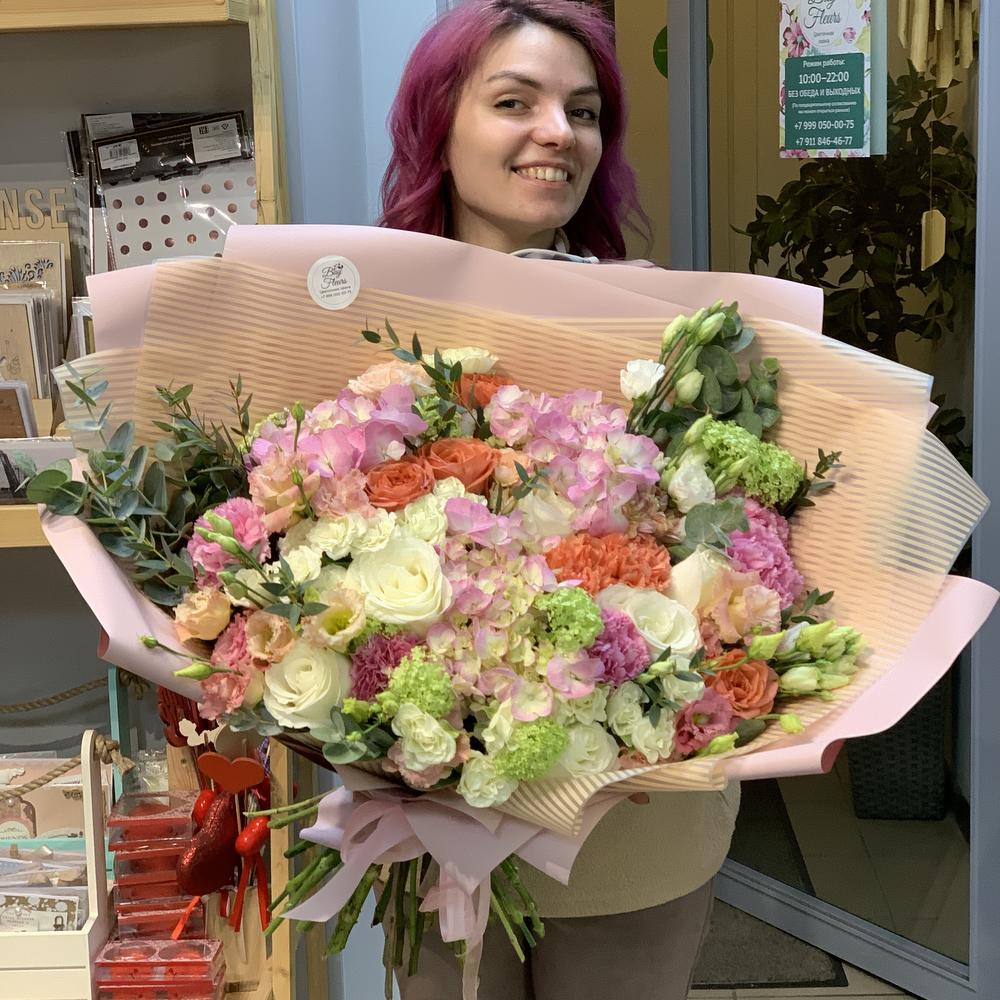 Категорий: Гвоздики, Гортензии, Кустовые розы, Лизиантусы, Пионовидные розы, Розы