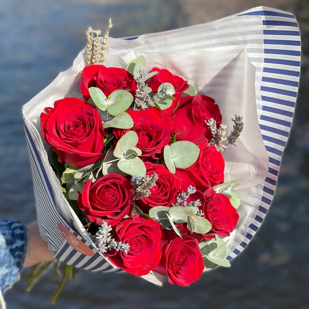 Букет из 11 красных роз “Морская полоска”
