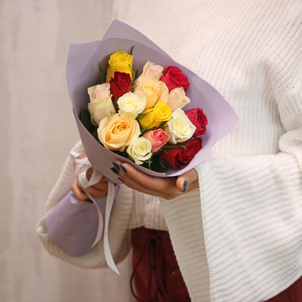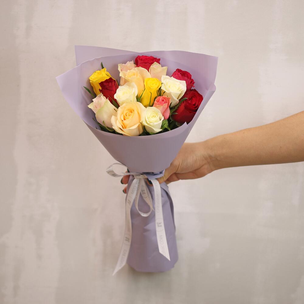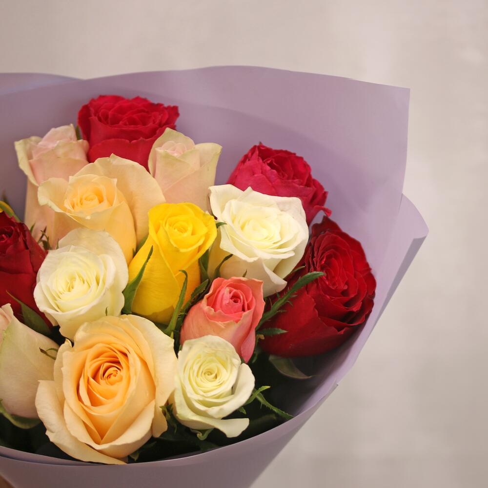 Букет из 15 роз микс 35-40 см (Кения) в упаковке