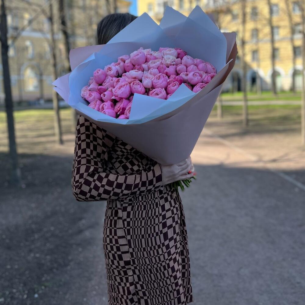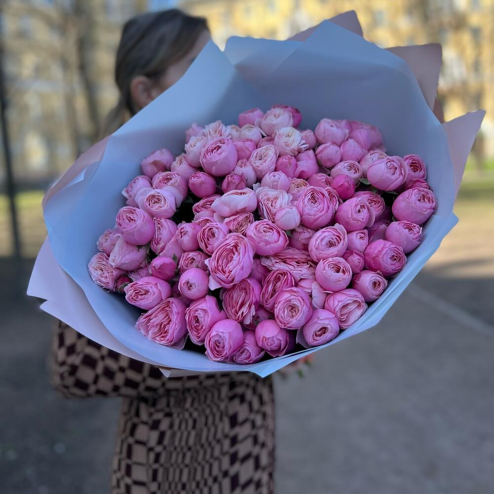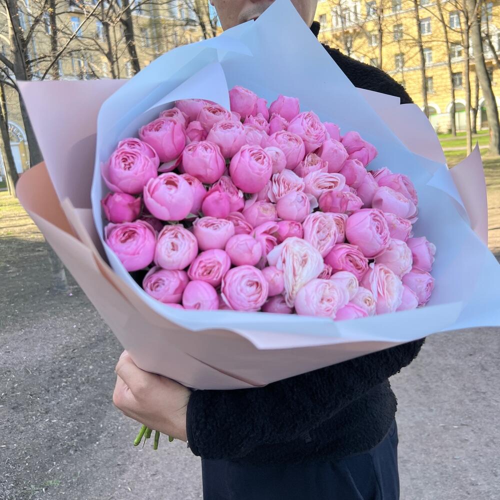 Букет из 25 пионовидных розовых кустовых роз