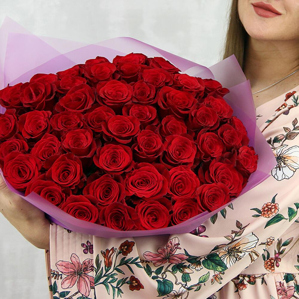 Букет из 51 красных роз premium 60-70 см (Эквадор) в стильной упаковке