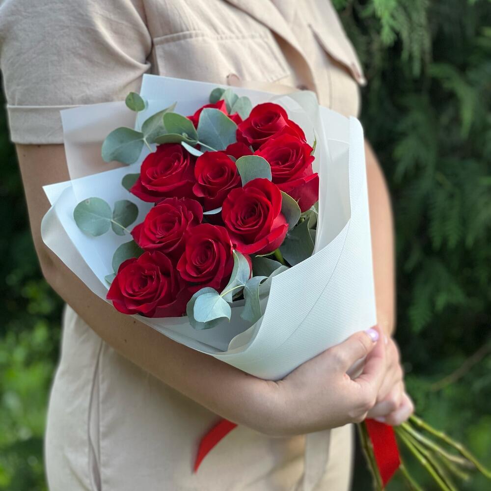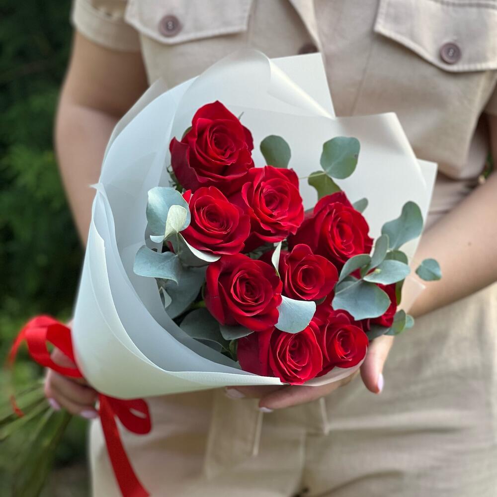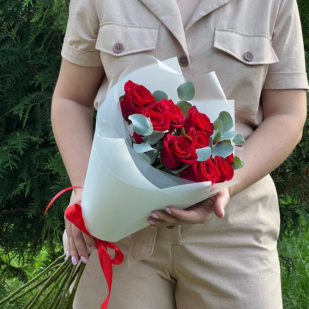 Букет из 9 Роз с эвкалиптом
