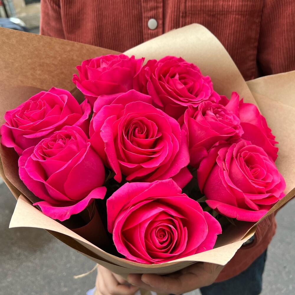 роза ароматная Pink Floyd – 9 шт.Упаковка крафт – 2 шт.Лента атласная – 1 шт.