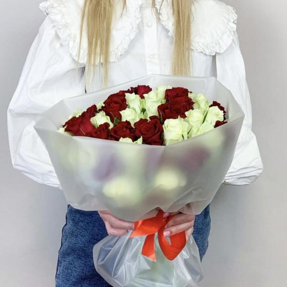 роза красная и белая кения 35-40 см – 51 шт.