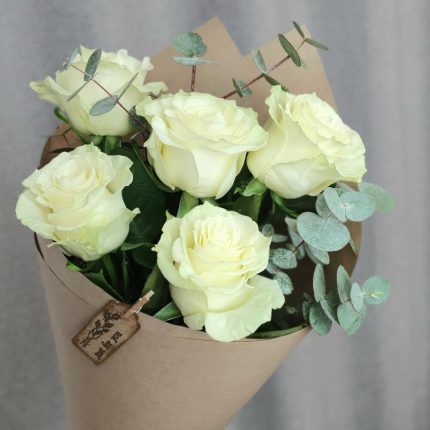 Букет из белых роз с эвкалиптом