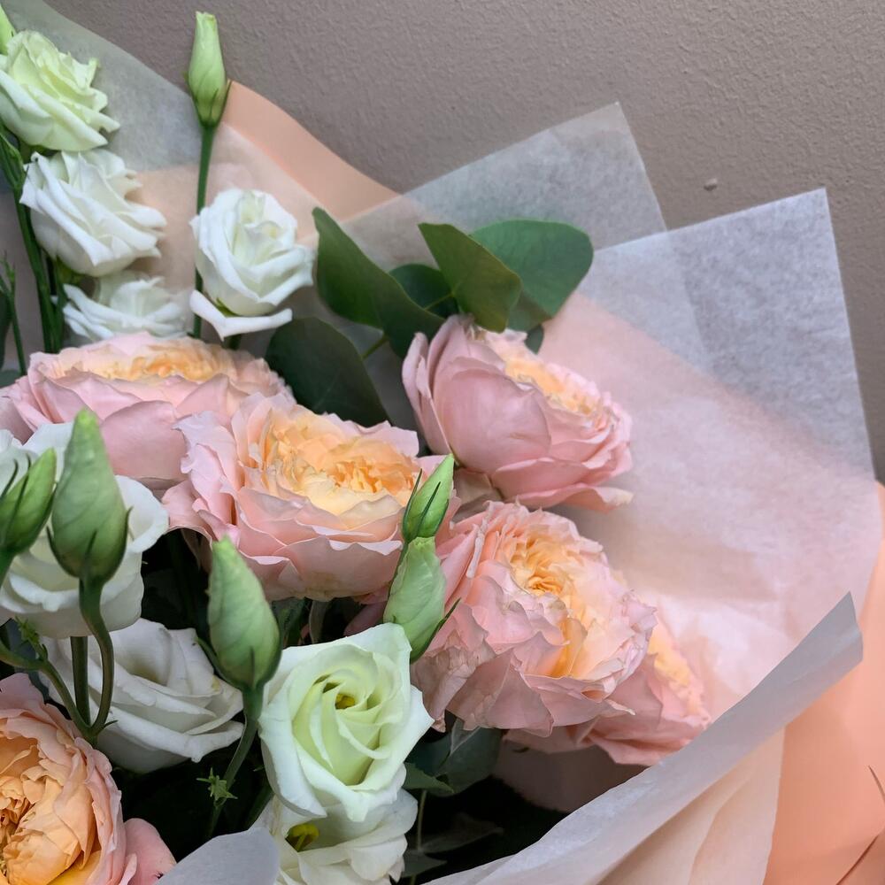 Альстромерии, Гвоздики, Кустовые розы, Лизиантусы, Розы, Хризантемы