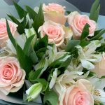 Букет из розовых роз, альстромерии и зелени «Матильда»