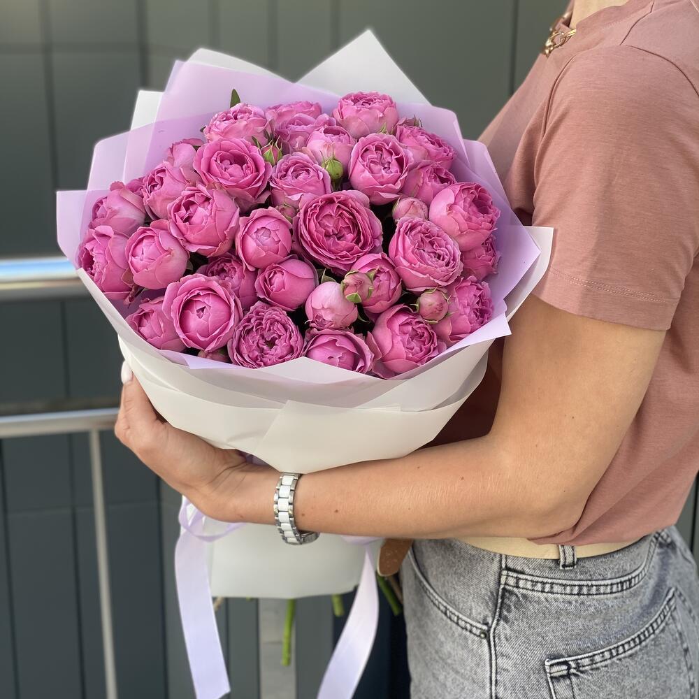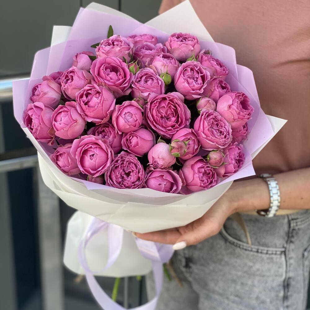 Букет из кустовых пионовидных роз в оформлении!