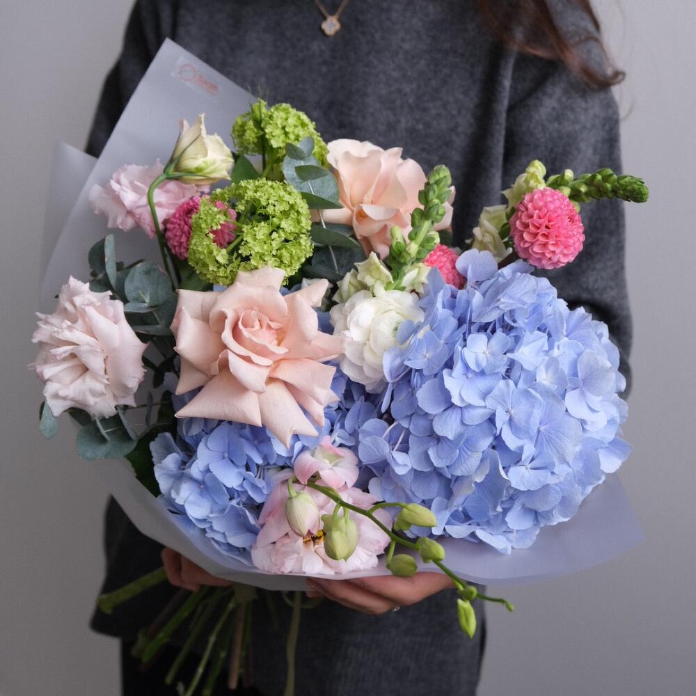 Гортензия с эвкалиптом и стифой
