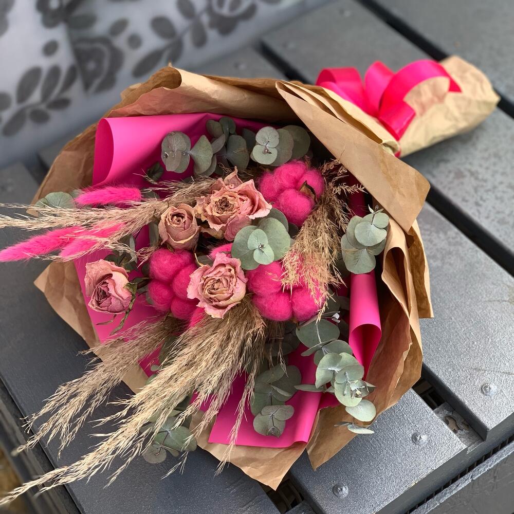 Букетик из сухоцветов в лавандовых тонах