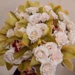 орхидея соцветия – 11 шт.Роза кустовая – 10 шт.шляпная коробка в ассортименте – 1 шт.Оазис флористический – 1 шт.