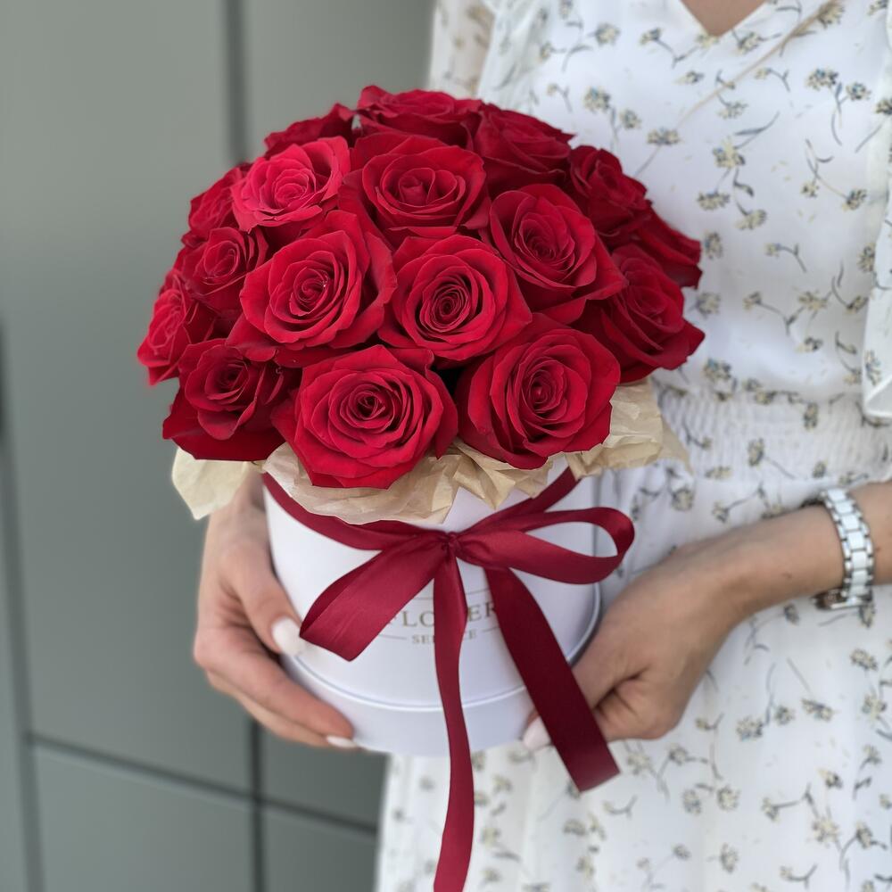 Коробка шляпная из 25 красных роз