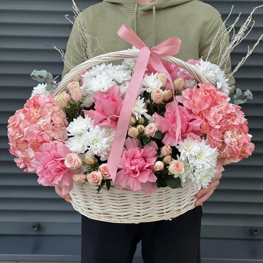 Гвоздики, Лизиантусы, Розы, Тюльпаны